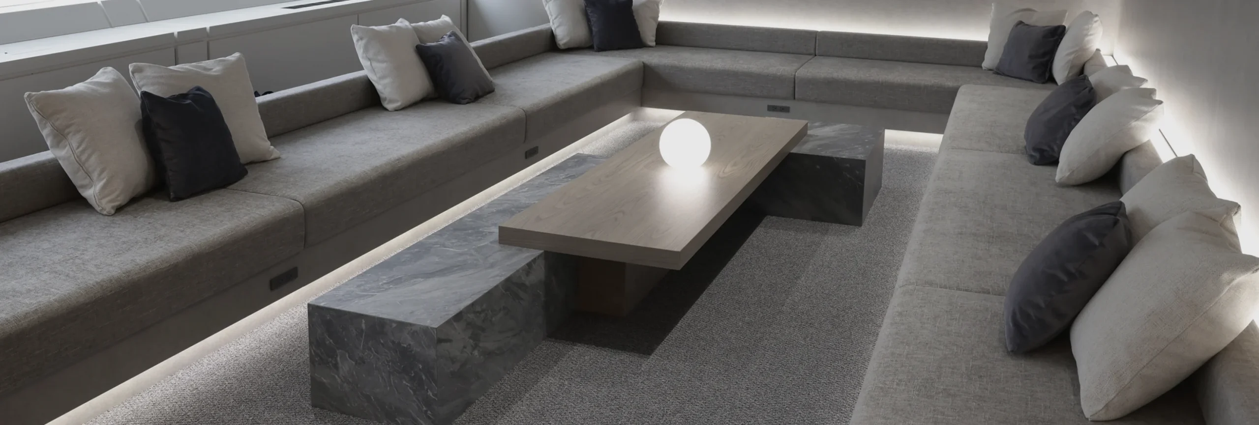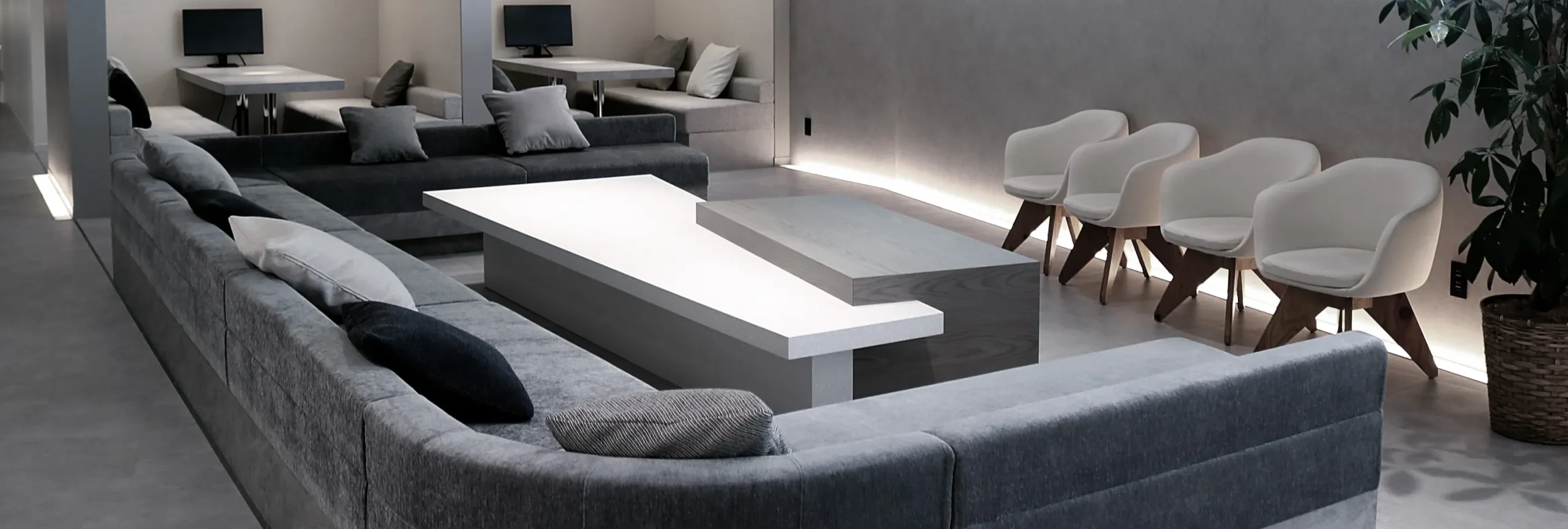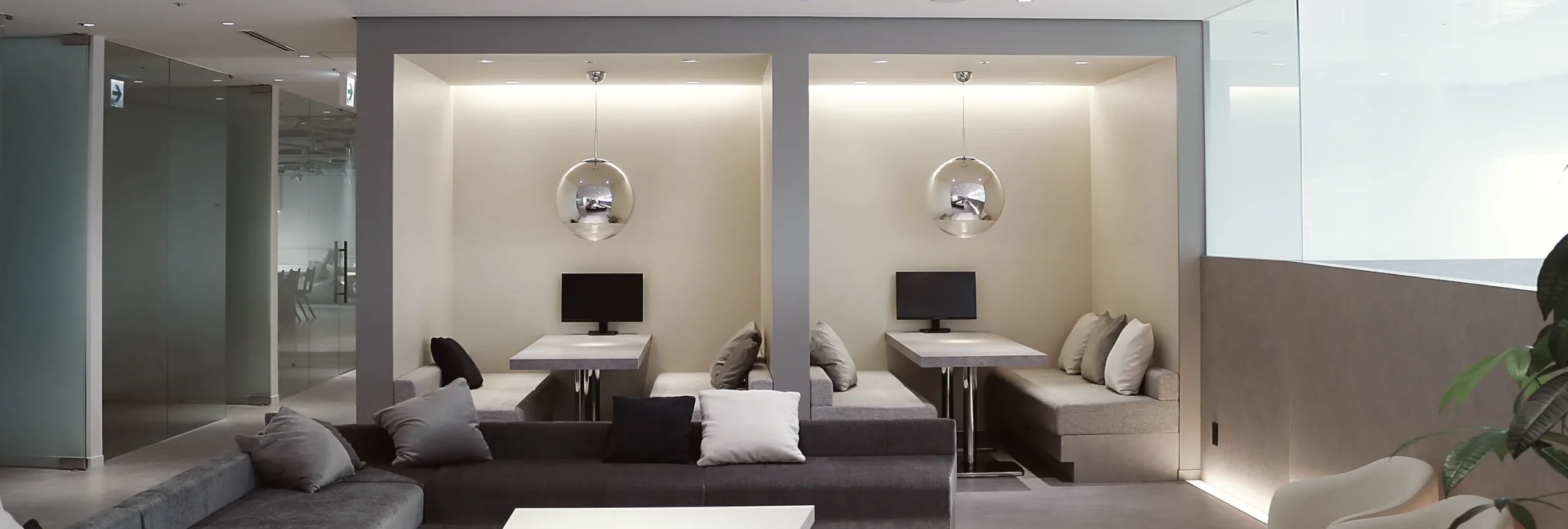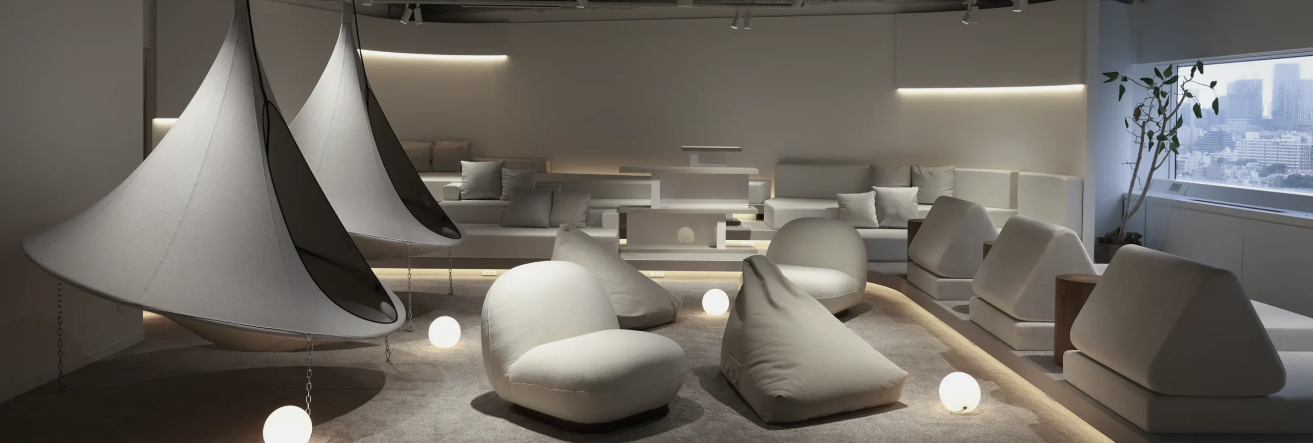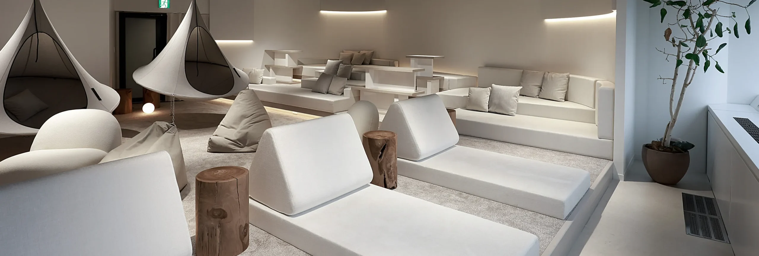 個室空間にリクライニングソファ3台を設置したナップスペース。