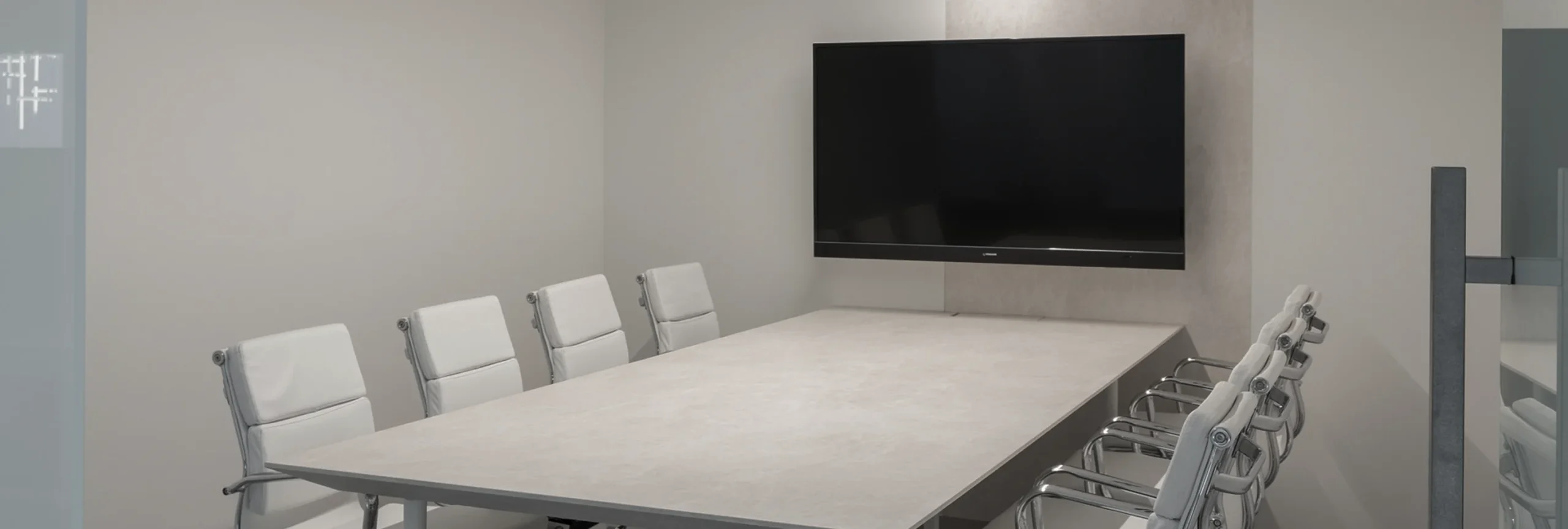 全室テレビモニタを設置し、壁面はホワイトボード仕様になっています。