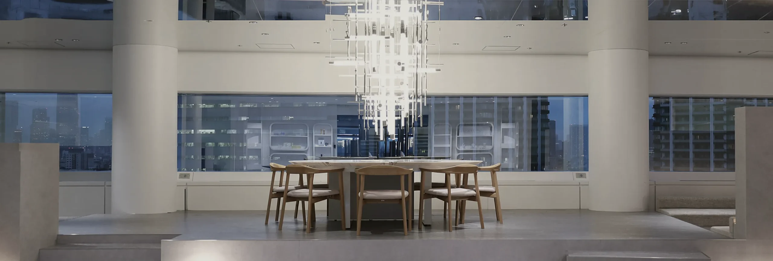 扉を抜けると、窓の外に広がる景色が、静かに開放感をもたらします。